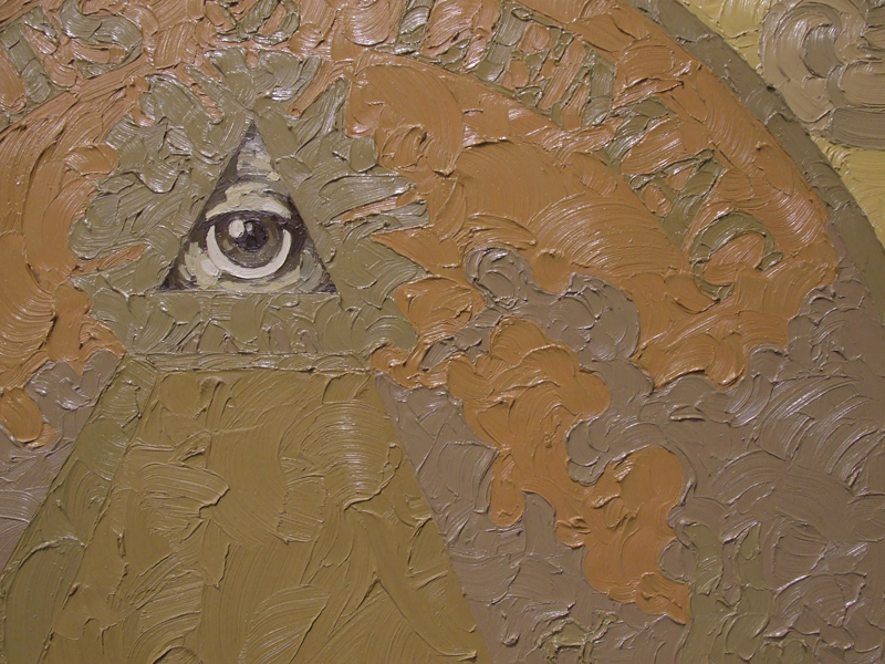 detail 3 – Watch the Left Hand Closely 2 (condensed version), Latex on wall, oil on canvas, 8 feet x 12 feet