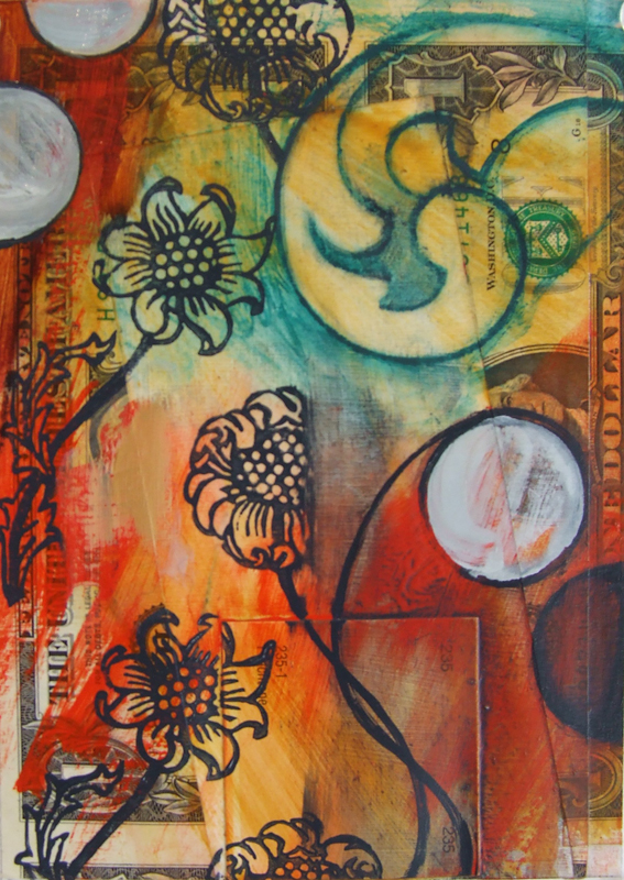 Drop: Repeat 2, Mixed media and collage on paper, 7 inches x 5 inches